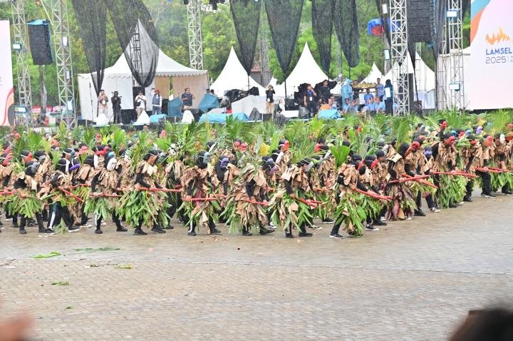 Momen istimewa terjadi ketika Tarian Tuping 12 Wajah, tarian tradisional khas Lampung Selatan, berhasil mencatatkan diri sebagai pemecah Rekor Museum Rekor Indonesia (MURI). Penari yang tampil dalam formasi besar menampilkan karakter dan ragam ekspresi unik Tuping, memukau para tamu kehormatan yang hadir.