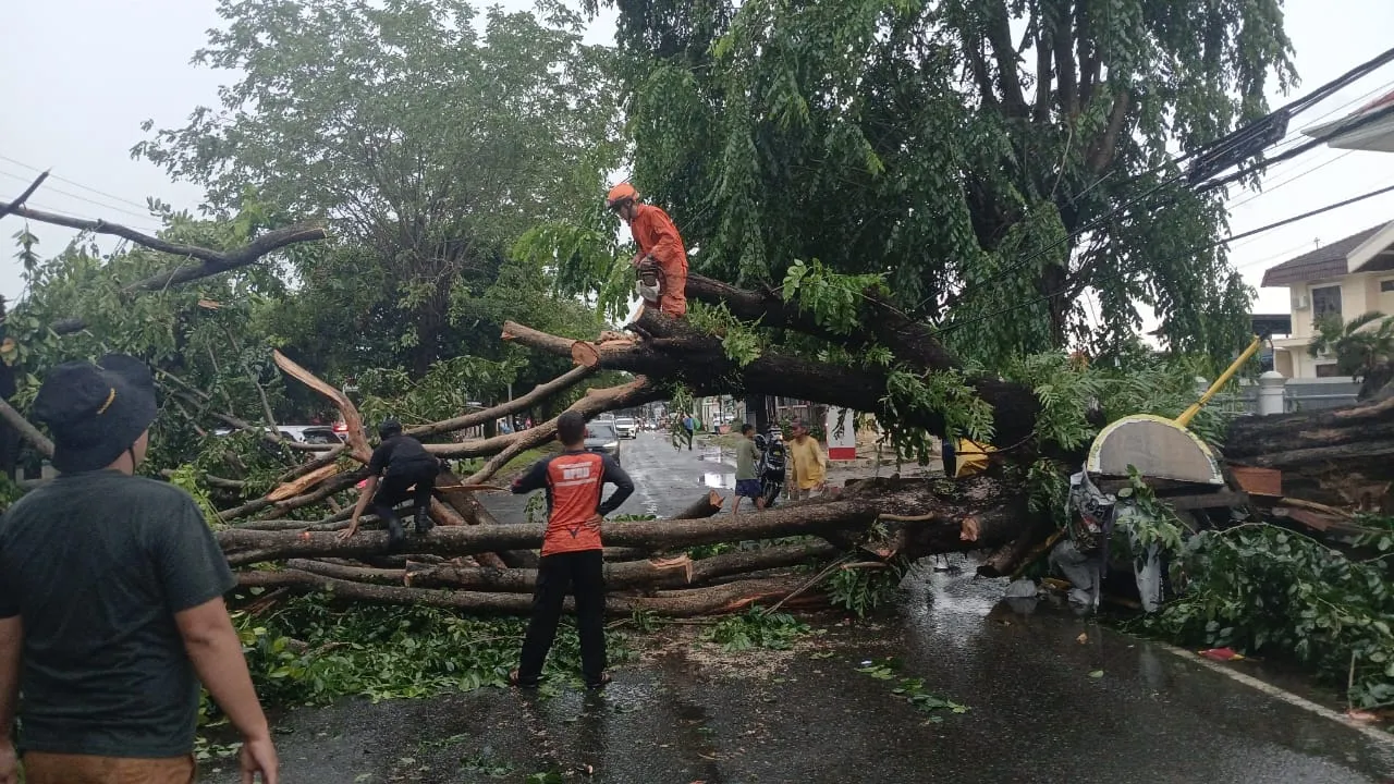Pohon tumbang akibat hujan dengan intensitas yang tinggi disertai angin kencang, itu mengakibatkan akses jalan tertutup. Namun, dengan kesiagaan TRC BPBD, kini jalan-jalan tersebut sudah dapat dilalui masyarakat.