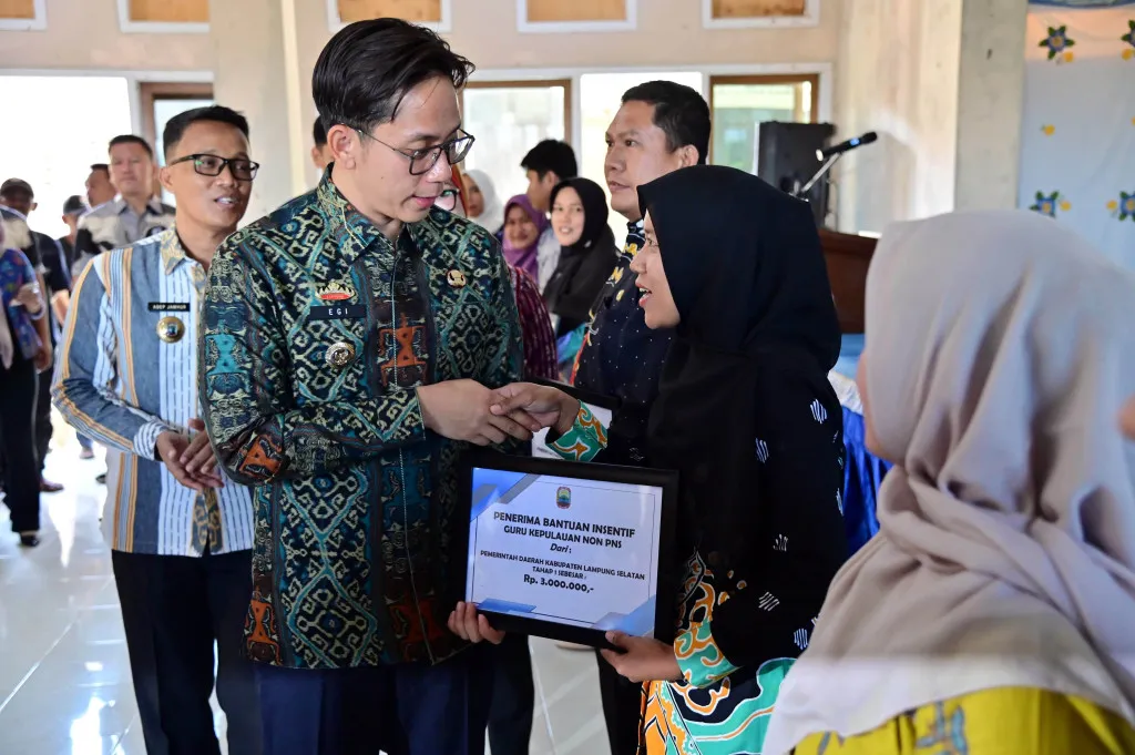Bupati Egi mengatakan, pemberian insentif itu merupakan bukti nyata Pemkab Lampung Selatan dalam memberikan perhatian kepada pendidik dan tenaga kependidikan, khususnya guru honorer yang telah memberikan kontribusi besar terhadap dunia pendidikan.
