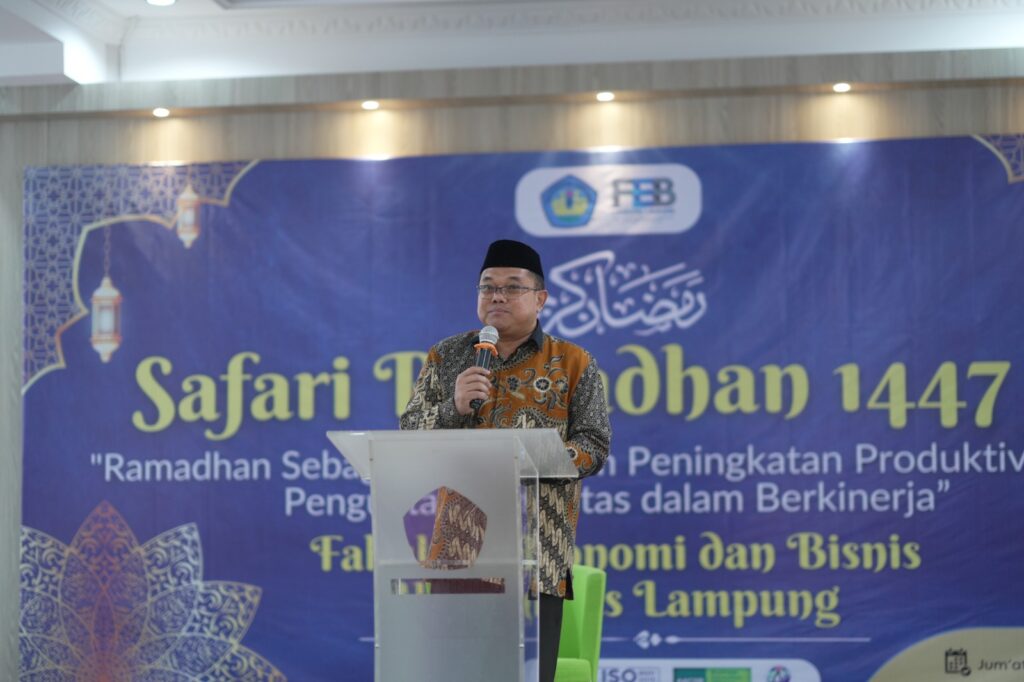 Bandarlampung –  Fakultas Ekonomi dan Bisnis (FEB) Universitas Lampung (Unila) menggelar Safari Ramadan pada Jumat, 27 Februari 2026, di Gedung Student Center kampus setempat. Kegiatan mengusung tema “Ramadan sebagai Momentum Peningkatan Produktivitas dan Penguatan Integritas dalam Berkinerja”.