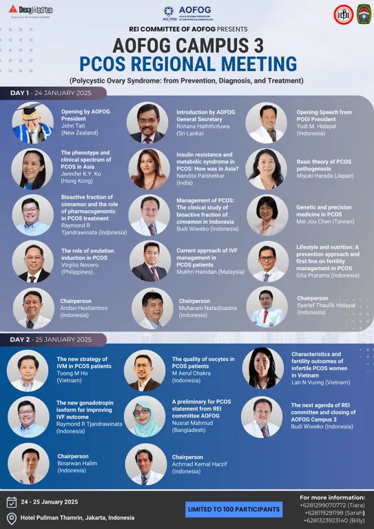 Melalui AOFOG Campus 3, Indonesia akan menyambut para ahli dari berbagai negara, termasuk Jepang, Hong Kong, India, Bangladesh, Filipina, Malaysia, dan Vietnam, yang akan berbagi penelitian terbaru serta pengalaman klinis mereka. Salah satu sorotan utama adalah kontribusi Indonesia dalam inovasi terapi berbasis bahan alami seperti fraksi bioaktif kayu manis, yang dipresentasikan oleh Prof. Raymond Tjandrawinata, sekaligus membuktikan kemampuan Indonesia untuk bersaing di tingkat internasional. Ketua Komite REI AOFOG, Prof. Dr. Budi Wiweko, menyatakan bahwa Indonesia siap menyambut delegasi dari seluruh kawasan Asia Oseania. “AOFOG Campus 3 adalah wujud kolaborasi regional untuk menjawab tantangan kesehatan reproduksi, khususnya terkait PCOS, yang dampaknya sangat besar bagi perempuan. Kami yakin forum ini akan memperkuat jejaring ilmu pengetahuan, inovasi medis, dan solusi berbasis bukti,” ungkapnya.