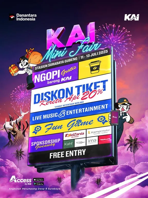 “Kami mengundang seluruh masyarakat Surabaya dan sekitarnya untuk hadir dan memeriahkan KAI Mini Fair 2025. Ayo manfaatkan momen istimewa ini untuk beli tiket hemat, ngopi santai, dan nikmati hiburan seru bersama keluarga di Stasiun Surabaya Gubeng!” pungkas Luqman.