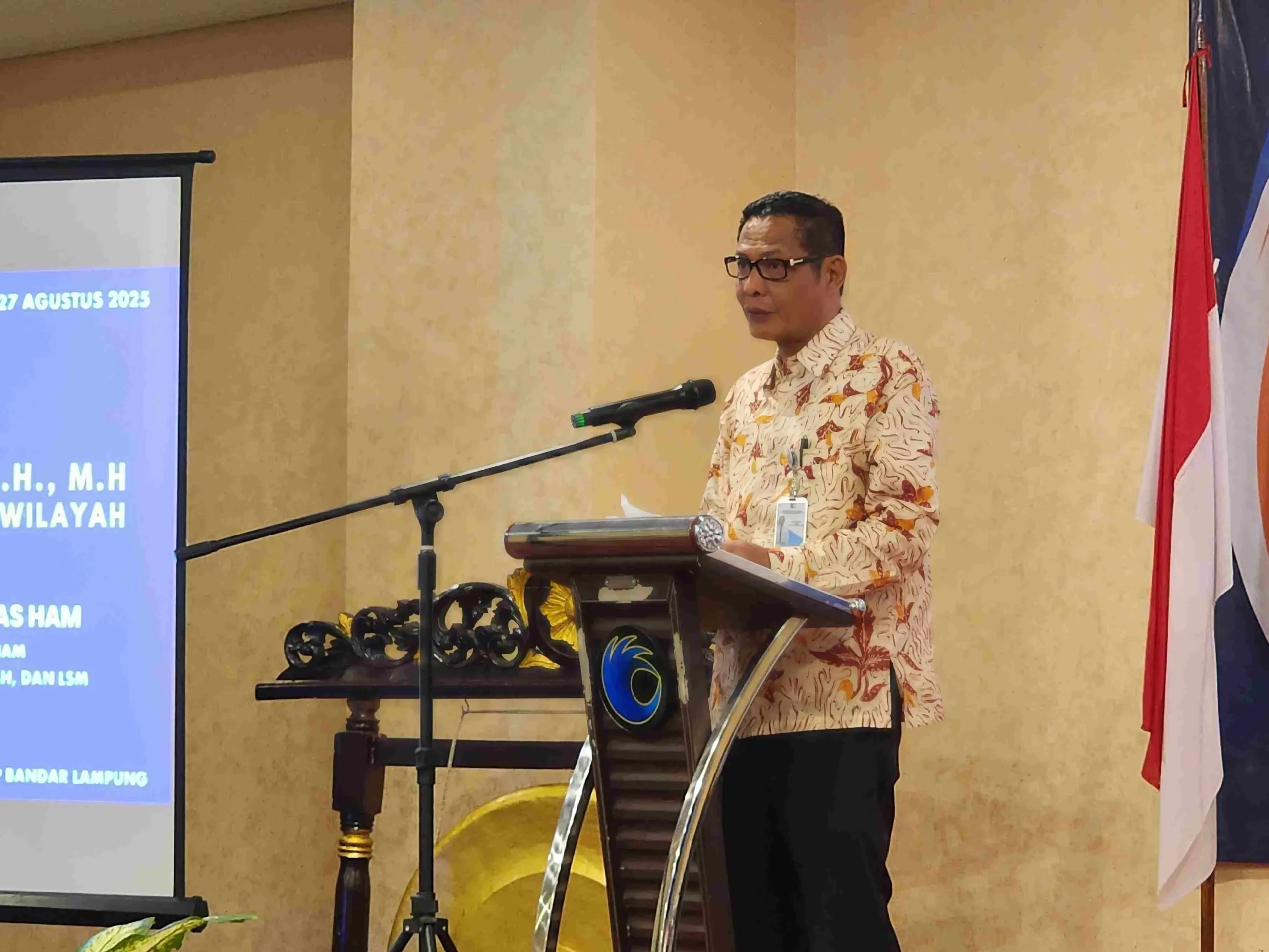 Bandar Lampung – Kantor Wilayah Kementerian Hukum dan HAM (Kemenkumham) Provinsi Lampung menegaskan pentingnya sinergi antara pemerintah dan masyarakat dalam mewujudkan budaya hak asasi manusia (HAM). Hal ini disampaikan Kepala Kanwil Ham Lampung, Basnamara, SH., MH, saat membuka kegiatan Penguatan Kapasitas HAM bagi Komunitas yang dihadiri berbagai perwakilan masyarakat dari enam kabupaten/kota di Lampung, Selasa (27/8/2025).