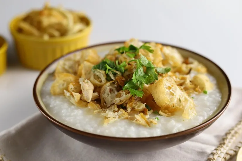 Anda bisa memilih bubur ayam dengan topping lengkap atau menikmati versi lebih sederhana, seperti: