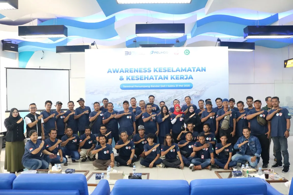 Medan, Juni 2025 – Dalam upaya meningkatkan kesadaran dan penerapan prinsip Keselamatan dan Kesehatan Kerja (K3) di lingkungan pelabuhan, PT Pelindo Multi Terminal (SPMT), subholding PT Pelabuhan Indonesia (Persero) yang mengelola operasional terminal nonpetikemas, berkolaborasi dengan Rumah Berdaya Pengemudi Indonesia (RBPI) Sumatra Utara menyelenggarakan kegiatan edukatif bagi para pengemudi angkutan barang (truck driver) yang bekerja di area Pelabuhan Belawan, Sabtu (31/5) di Ruang Terminal Penumpang Bandar Deli Belawan.