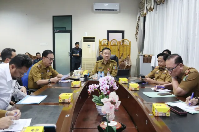 Kesiapan Provinsi Lampung dalam merealisasikan Koperasi Desa/Kelurahan Merah Putih disampaikan Sekdaprov Marindo Kurniawan pada Rapat Persiapan Peluncuran Koperasi Desa/Kelurahan Merah Putih di Ruang Kerja Sekdaprov, Bandarlampung, Selasa (15/7/2025).