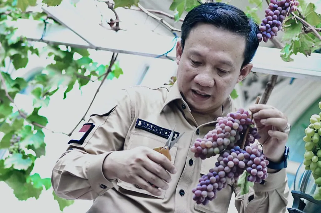 PRINGSEWU | Wartaviral.com Penjabat Bupati Pringsewu Marindo Kurniawan mengatakan prospek budidaya anggur di Kabupaten Pringsewu masih terbuka lebar, baik untuk kebutuhan konsumsi, pemasaran, maupun konsep agrowisata petik buah. Hal tersebut dilihat dari potensi lahan pekarangan di daerah ini yang dapat dimanfaatkan sebagai lahan untuk usaha budidaya anggur yang mencapai 3.508 hektar yang tersebar di sembilan kecamatan.