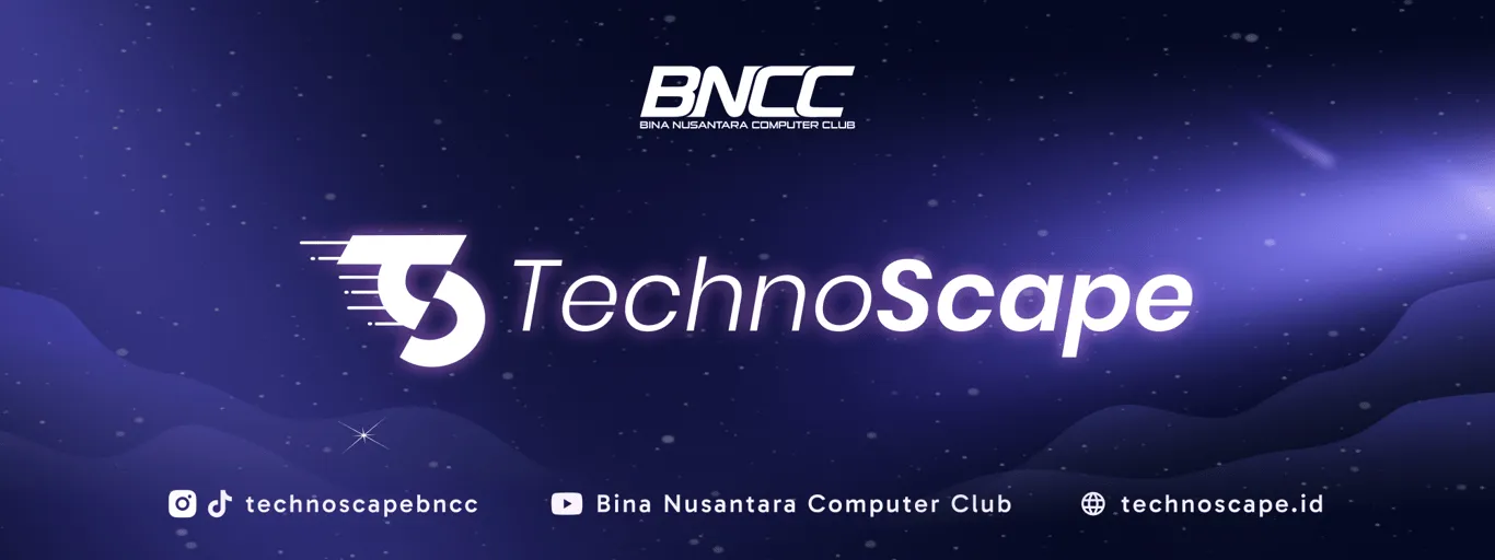 Bina Nusantara Computer Club (BNCC), yaitu organisasi teknologi tertua di BINUS kembali mengumumkan acara tahunan terbesar mereka yaitu TechnoScape 2025 yang akan dibawakan dengan tema “Future Forward: Exploring the Digital Horizon”. Acara ini merupakan wadah bagi para penggemar teknologi untuk menambahkan wawasan tentang tren teknologi masa depan dan memperluas koneksi dengan para profesional di industri teknologi.