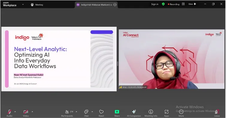 Menanggapi persoalan ini, Telkom Indonesia melalui program Indigo menghadirkan Indigo AI Connect Series, sebuah sesi webinar bertajuk “Next Level Analytics: Optimizing AI into Everyday Data Workflows.” Kegiatan ini bertujuan menjembatani kesenjangan antara ketersediaan teknologi dan kebutuhan praktis para profesional data, dengan pendekatan yang aplikatif dan berbasis konteks. Lebih dari dua ratus peserta mengikuti sesi ini secara daring, yang dirancang untuk menyajikan praktik langsung serta pembahasan yang relevan dan kontekstual.