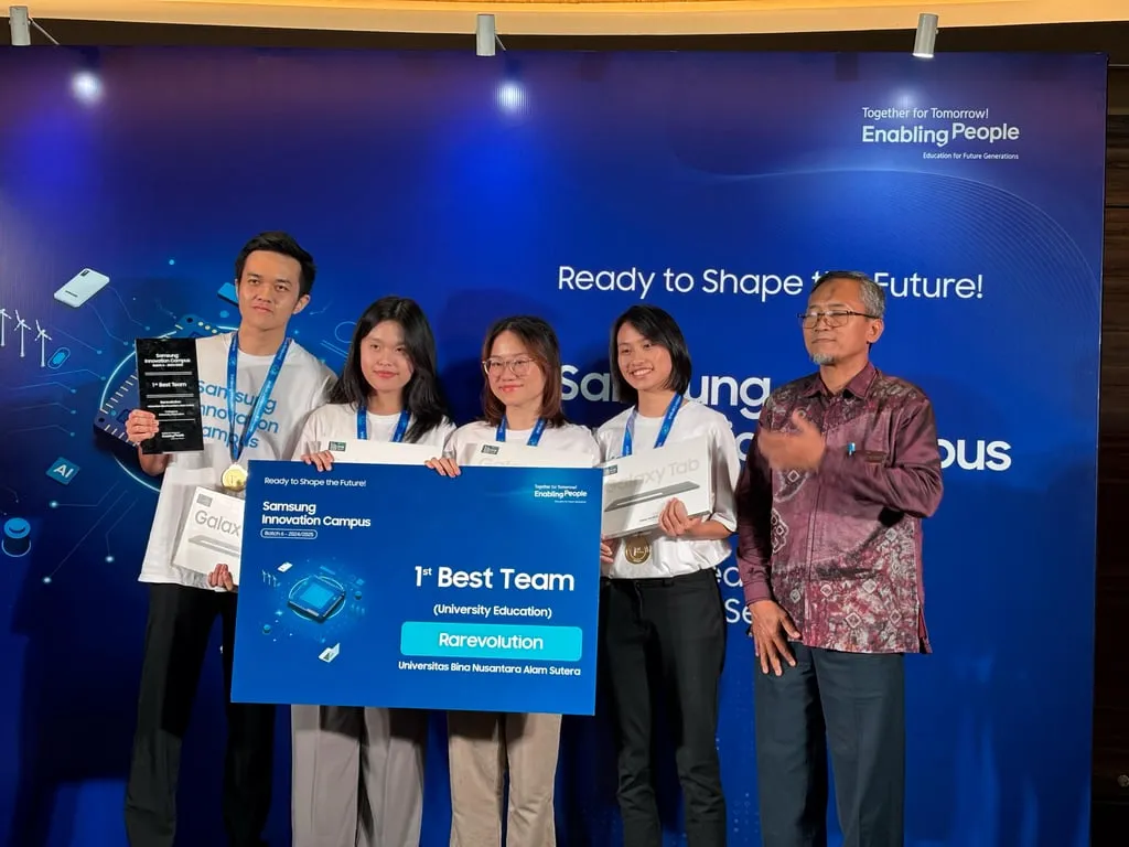 Jakarta, 4 Juni 2025 — Mahasiswa School of Computer Science (SOCS) BINUS University kembali mengukir prestasi membanggakan. Tim Rarevolution, yang terdiri dari Adeline Charlotte Augustinne, Anastashia Ellena Widjaja, Angeline Rachel, dan Rowen Nicholas, berhasil meraih predikat Tim Terbaik dalam ajang Samsung Innovation Campus (SIC) Batch 6 Tahun 2024/2025 untuk kategori universitas. Dengan jumlah pendaftar mencapai 10.623 peserta dari seluruh Indonesia, terbesar sejak program ini diluncurkan. Pencapaian ini semakin menunjukkan kualitas dan daya saing inovasi mereka melalui karya bertajuk PawPal.