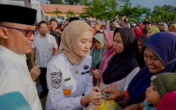 Dalam kesempatan tersebut, Wagub Jihan turun langsung melayani masyarakat yang antusias mengantre untuk membeli berbagai bahan pokok yang dijual dengan harga terjangkau.