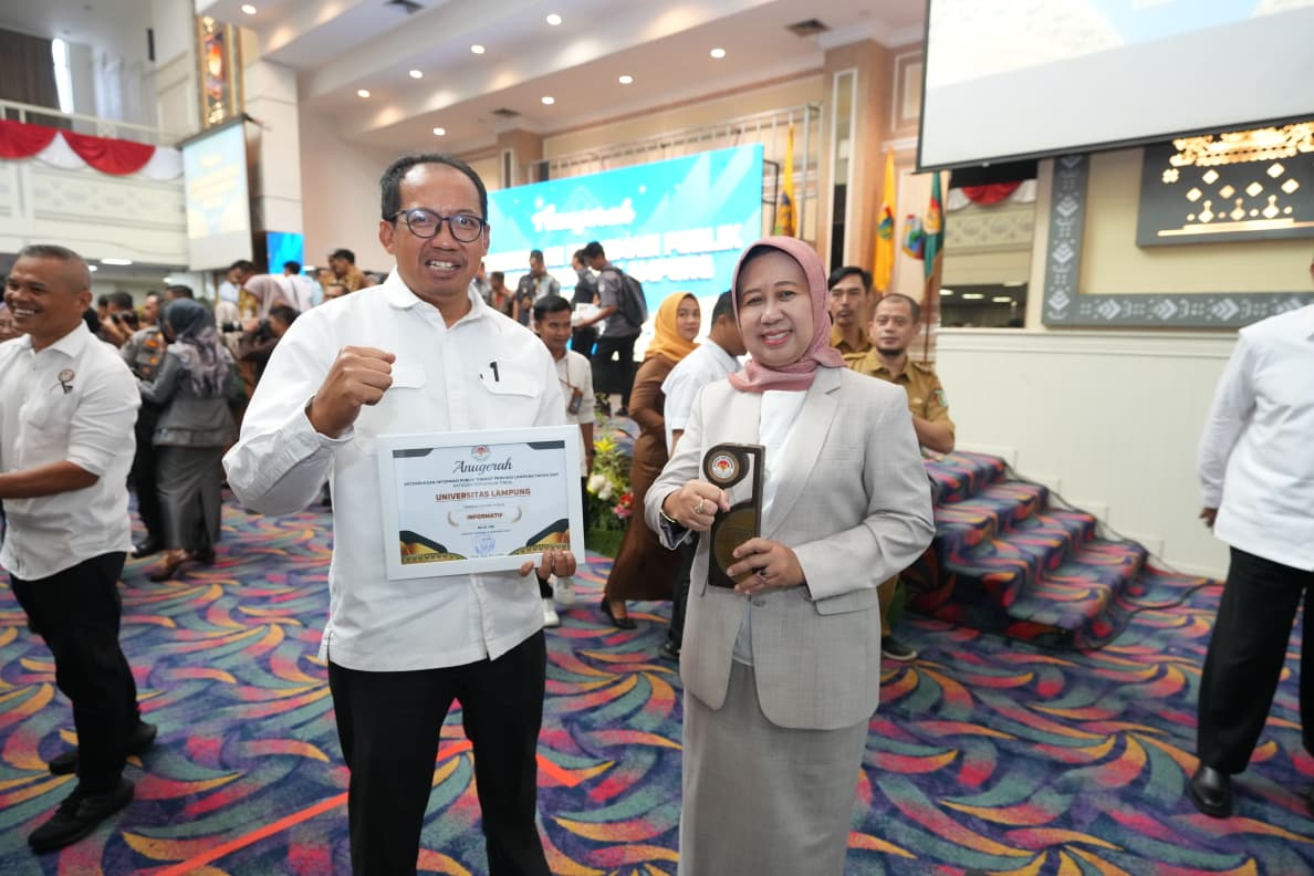 Bandar Lampung- Universitas Lampung (Unila) kembali mencatat prestasi gemilang dengan meraih predikat Badan Publik Perguruan Tinggi Informatif yang diselenggarakan Komisi Informasi (KI) Provinsi Lampung dalam ajang Anugerah Keterbukaan Informasi Publik Tingkat Provinsi Lampung tahun 2025. Kegiatan digealr di Balai Keratun Kantor Gubernur Provinsi Lampung, Senin, 8 Desember 2025.