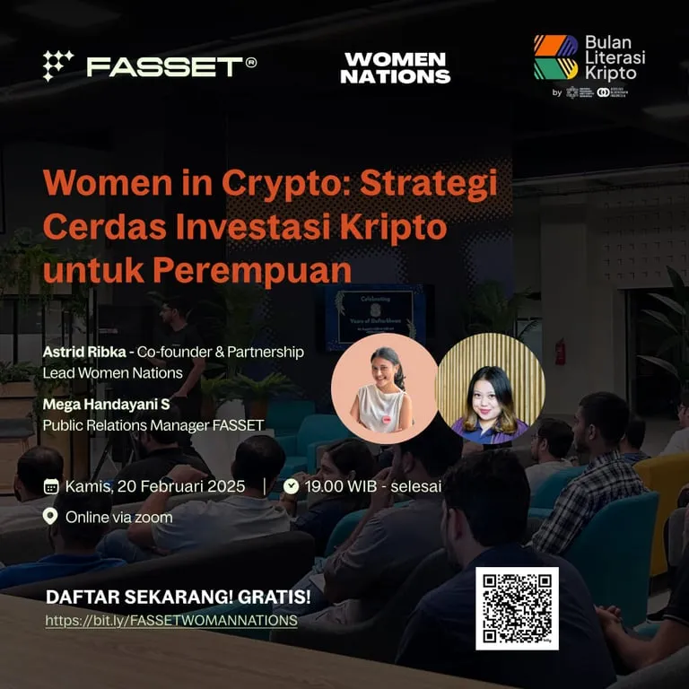 Fasset, platform pertukaran aset kripto berbasis di Dubai menggelar webinar edukatif bertajuk “Women in Crypto: Strategi Cerdas Investasi Kripto untuk Perempuan” dalam rangka Bulan Literasi Kripto 2025. Webinar yang diadakan pada 20 Februari 2025 ini menarik lebih dari 362 peserta, mayoritas perempuan, dan menghadirkan Mega Handayani Supriyanto (Public Relations Manager Fasset) serta Women Nations sebagai mitra kolaborasi. Diskusi berfokus pada strategi investasi, manajemen risiko, tantangan dan peluang bagi perempuan dalam industri kripto serta pentingnya literasi keuangan untuk memberdayakan perempuan dan menghindari jebakan investasi ilegal.